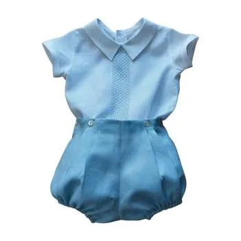 20011-23 CONJUNTO PARA NIÑOS CAMISA BLANCA Y SHORT CELESTE. BORDADO MODELO CARTAGO